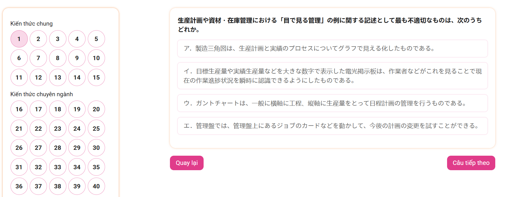 (Mô phỏng kỳ thi 生産管理 3級 – CBT)